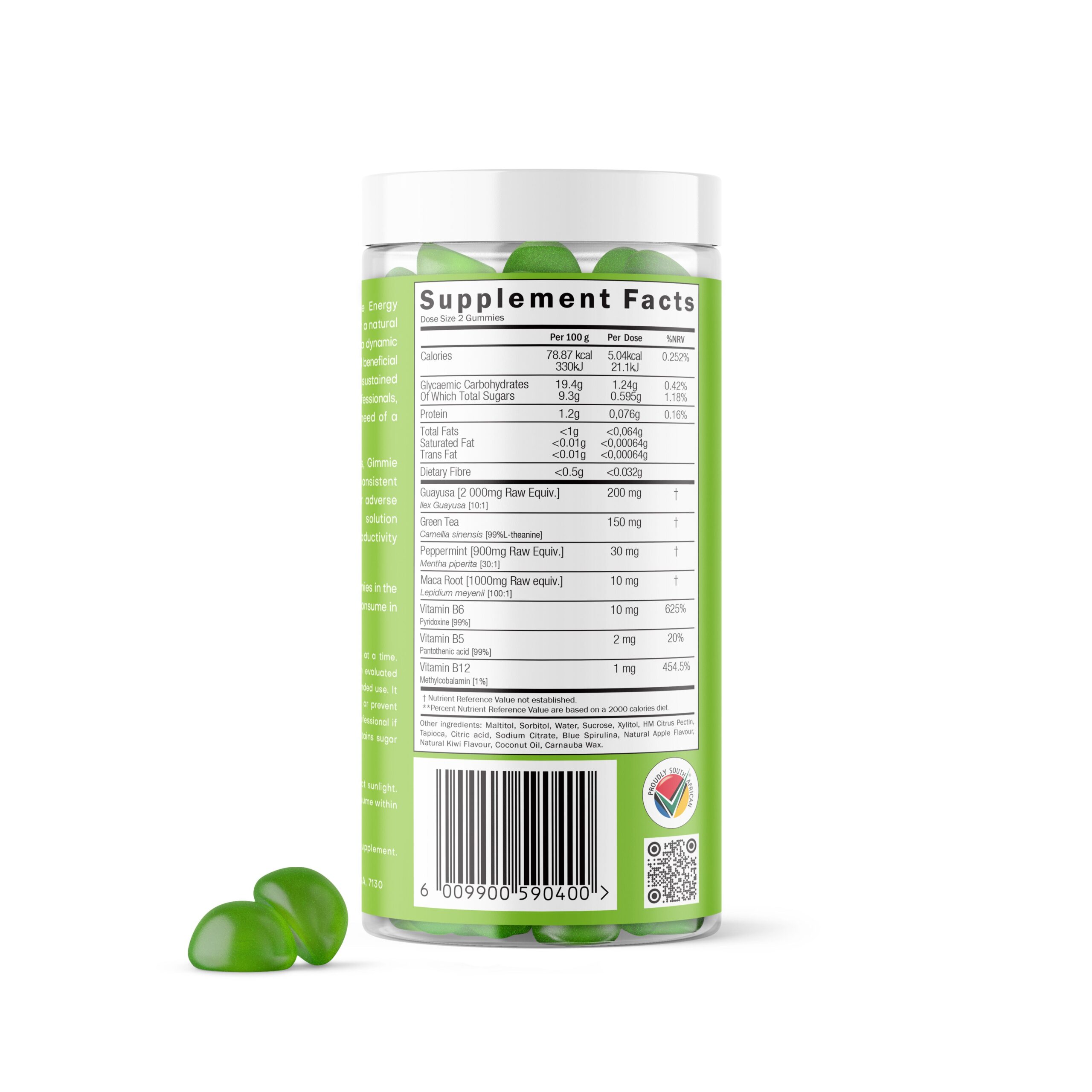 Experience the ideal pick-me-up with a boost of energy on the go! These gummies are made with a blend of high-quality herbal extracts and essential B vitas to provide a sustained release of energy that can carry you through your day. Gimmie Energy gummies deliver a steady stream of energy without the crash or unwanted side effects associated with typical energy supplements, making them a fun and tasty solution for busy professionals, athletes, students, and anyone who wants to stay energized and productive all day.