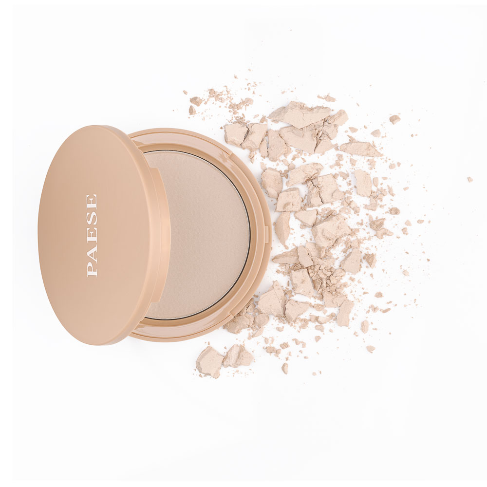 The product unifies the skin tone with a soft-focus effect. The face looks well-rested and radiant. The glowing powder conceals minor skin imperfections, leaving it smooth. The lightweight formula reflects light for a subtle glow.