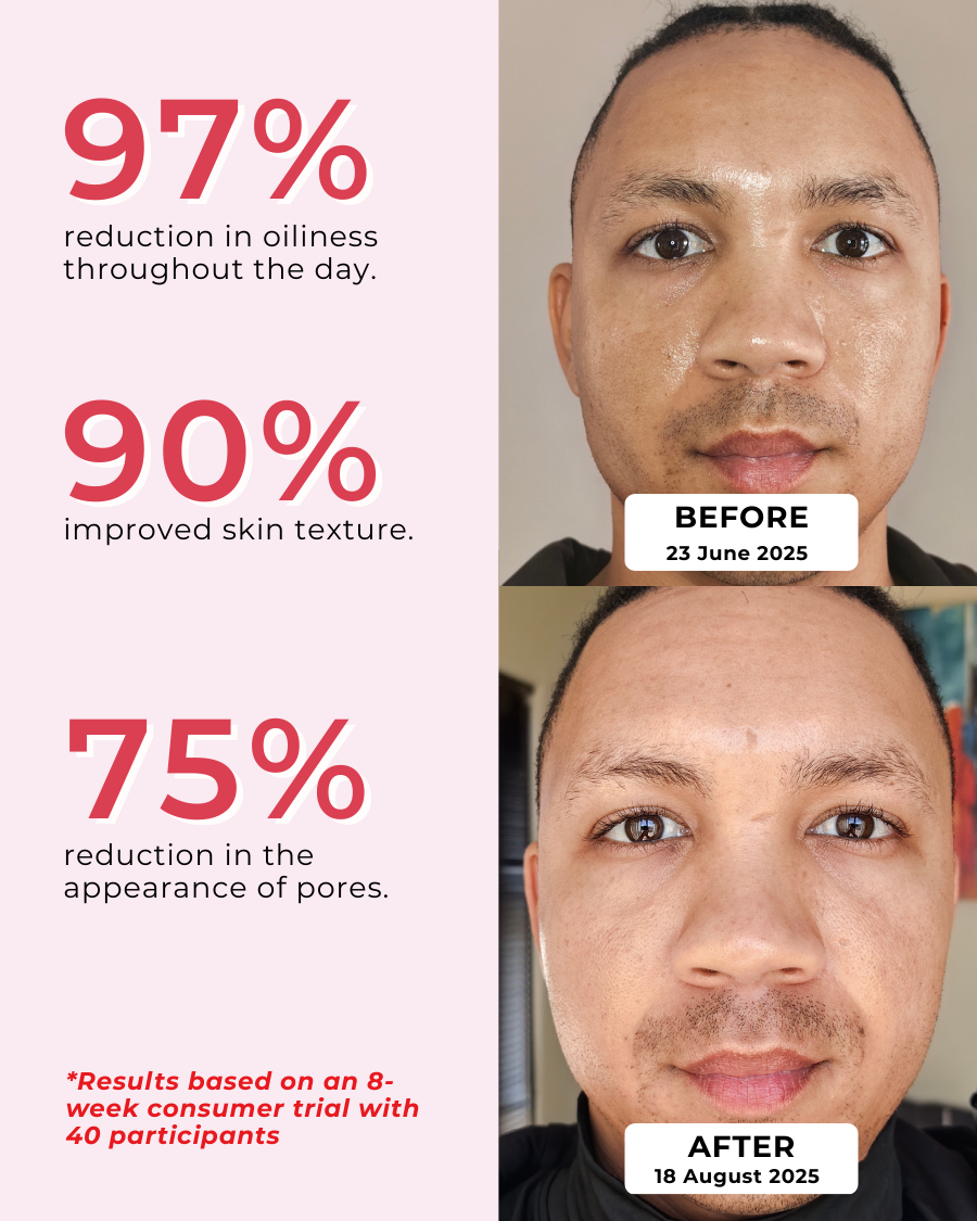 Control shine and refine your pores with this lightweight hybrid serum-moisturiser. Formulated with Zinc, Bamboo, Niacinamide, and Iris Root Extract, it balances oil production, soothes inflammation, and enhances skin texture, leaving you with a smooth, fresh, and naturally matte finish that lasts all day.