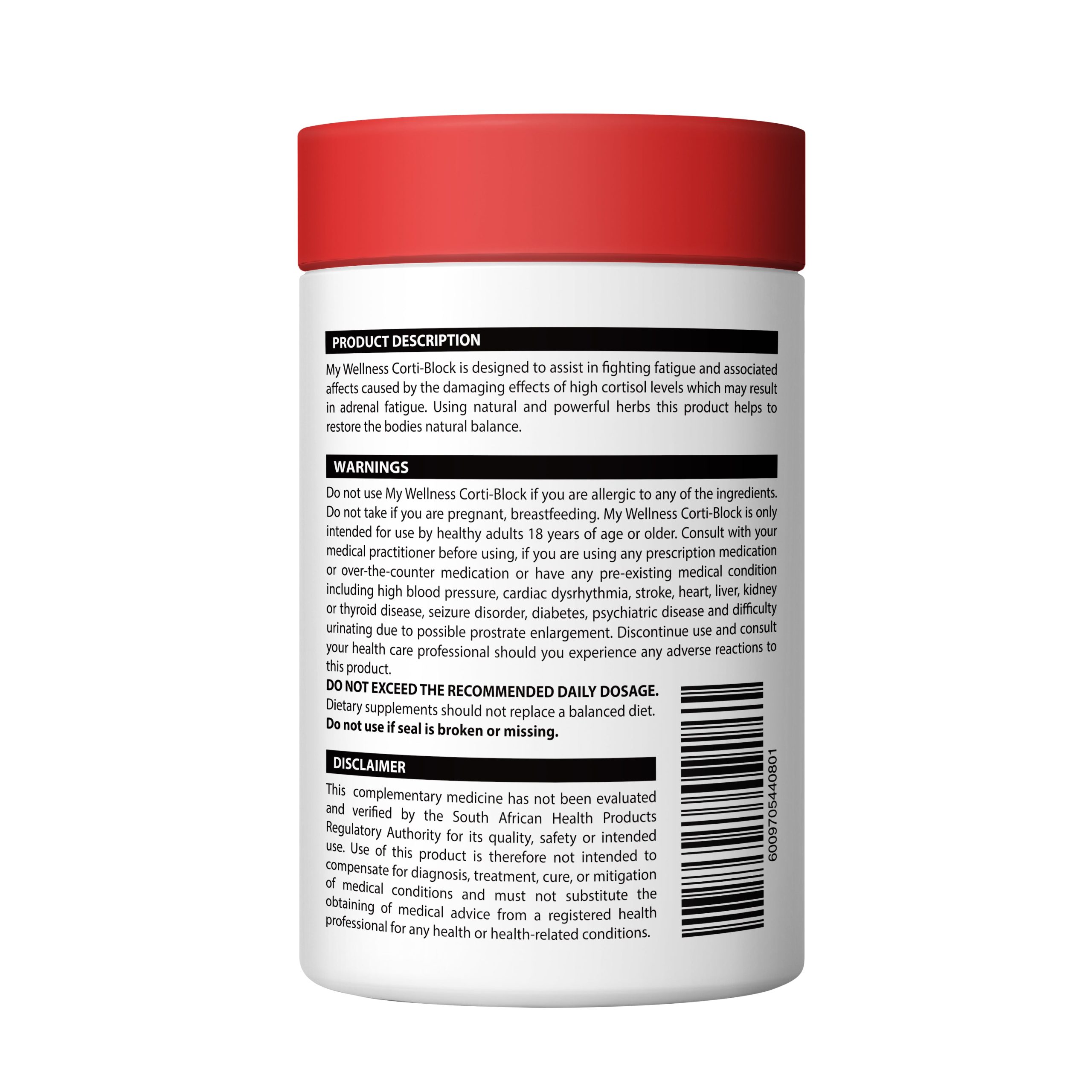 My Wellness Corti-Block is designed to assist in fighting fatigue and associated aspects caused by the damaging effects of high cortisol levels which may result in adrenal fatigue. Using natural and powerful herbal this product helps to restore the bodies natural balance.