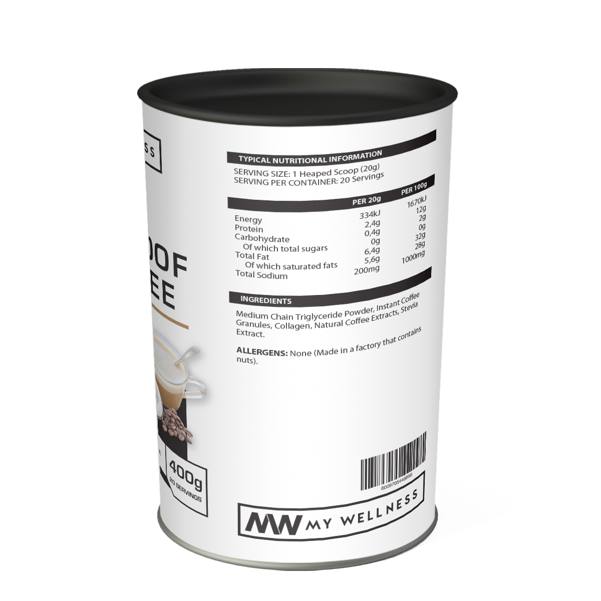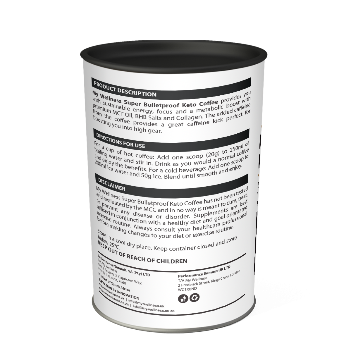 My Wellness Bulletproof Keto Coffee provides you with sustainable energy, focus and a metabolic boost with premium MCT oil, Collagen and Butter.