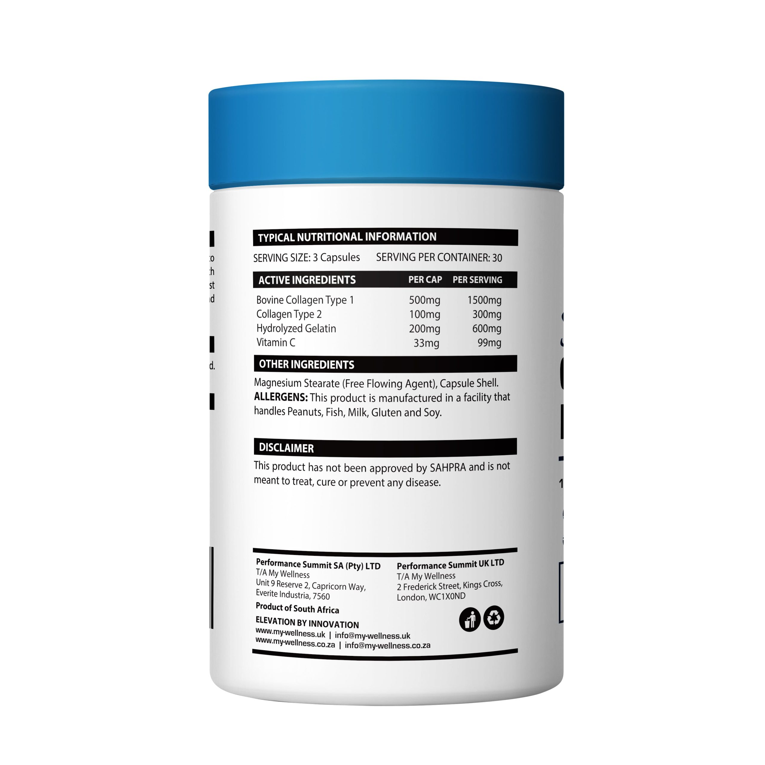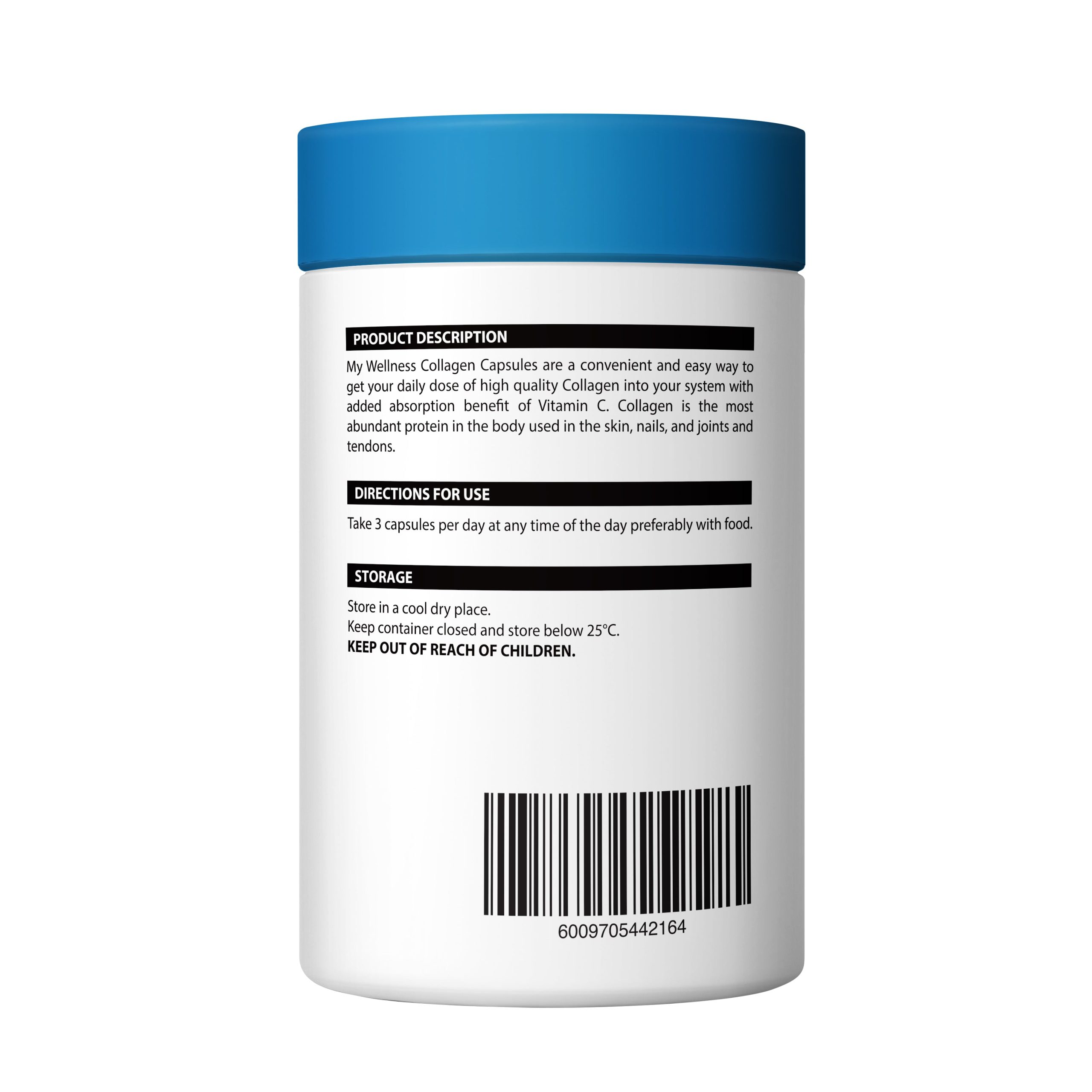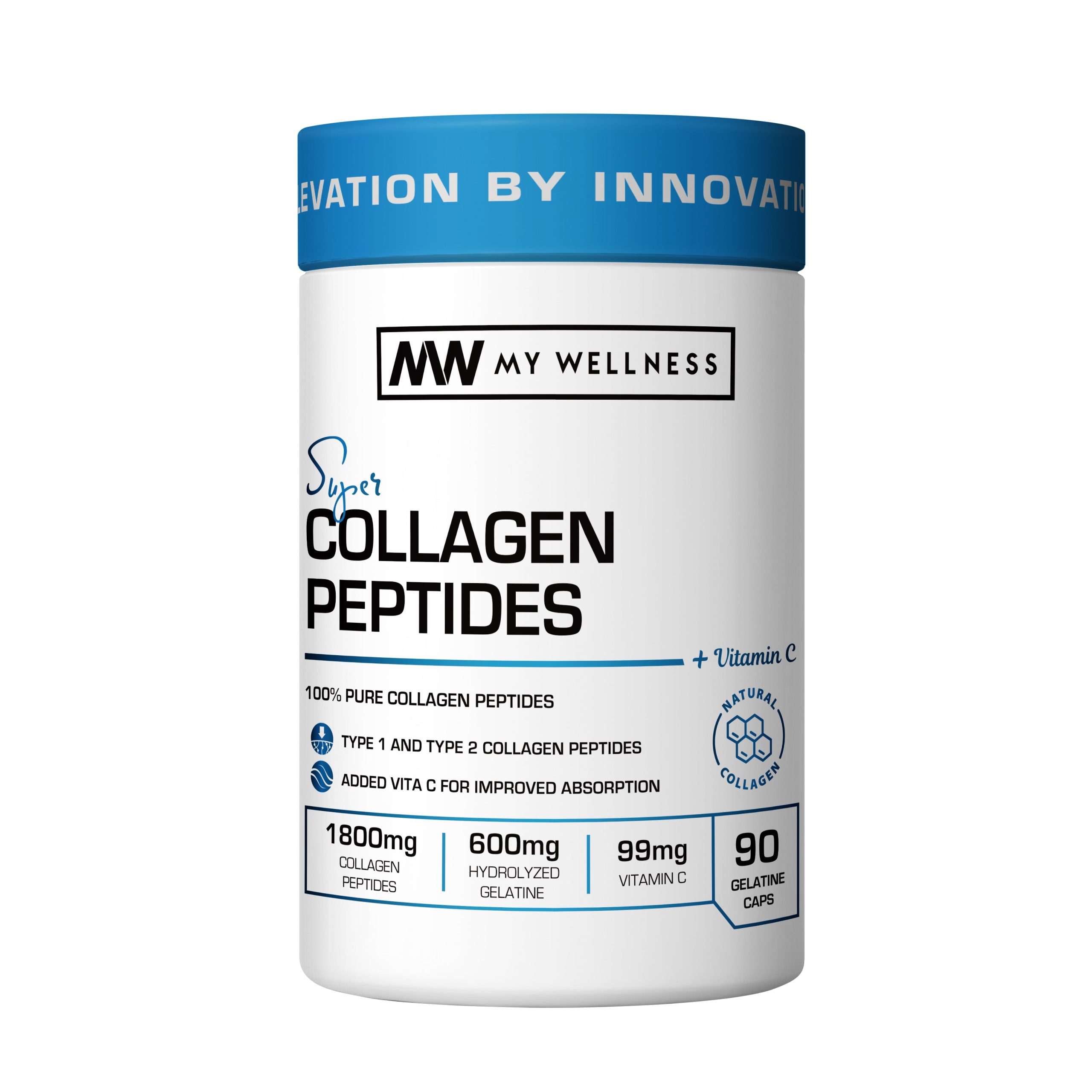 My Wellness Collagen Capsules are a convenient and easy way to get your daily dose of high quality collagen into your system with added absorption benefit of Vitamin C..Collagen is the most abundant protein in the body used in skin, nails, joints and tendons.